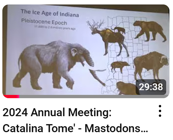 - 2024 Annual Meeting, featuring the Indiana State Museum’s curator of Paleobiology, Dr. Catalina Tome’ who talks about Mastodons in Indiana (generally) and Pulaski County (specifically).