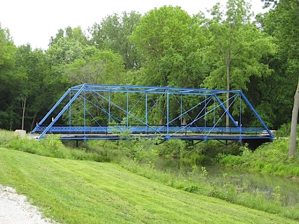 This bridge is no longer in Pulaski County. Now called the Blue Bridge, (or Gilmore Bridge), it is a 1905 Stearns Truss bridge. In Pulaski County, it had spanned the Big Monon Ditch. Relocated to Carroll County, it now spans the Canal side-cut behind the Pizza Hut in Delphi.