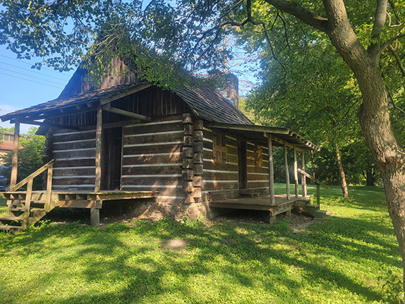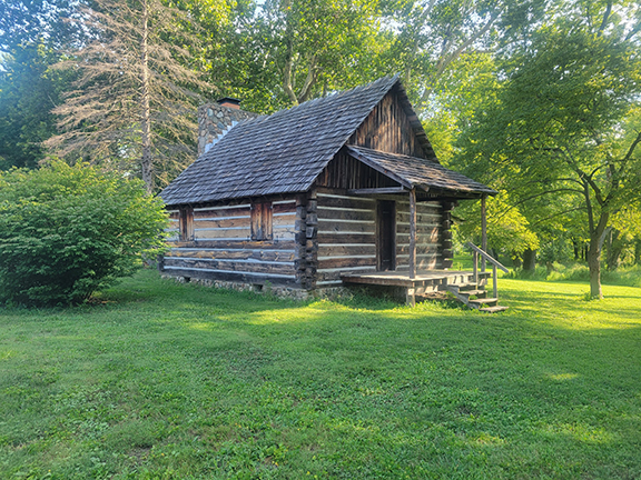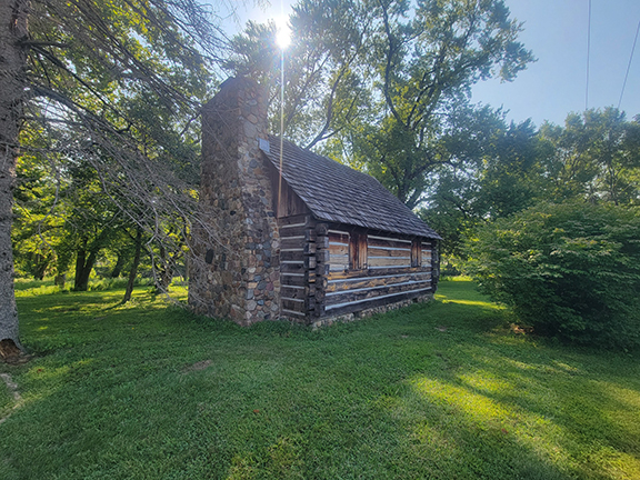 The replica was a labor of love for members of the Pulaski County Historical Society around 1965. In order to consolidate properties so the society could concentrate on the museum, the cabin was gifted to the Power From The Past, with permission from the County Commissioners (the property is county-owned).