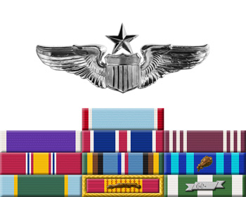 The list of citations from the wall of faces includes these photos, with explanations of what the medals and citations represent. Not included in that record is the Distinguished Flying Cross, which he was awarded.