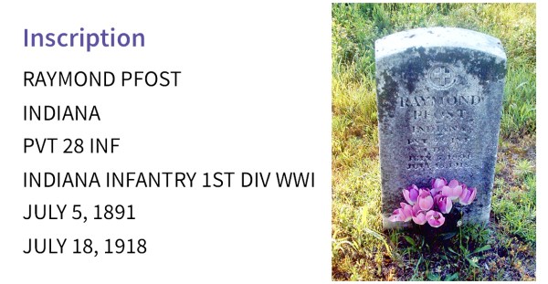 As plans were made, however, burials had to take place. On August 4, 1922, the body of Raymond Pfost was buried in Oise-Aisne American Cemetery in Fère-en-Tardenois, France, Grave 7, Row 36, Block D.
