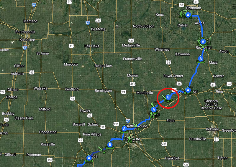- September 4: Chippeway on Tippecanoe River north of Rochester (traveled 21 miles)