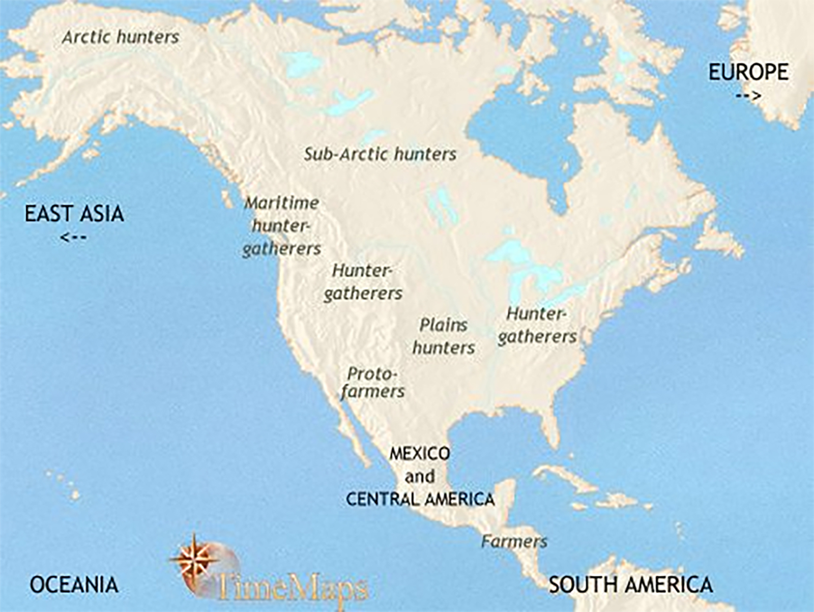 Before going into detail of the various ages, included here is a map of supposed migratory patterns of humans to this continent.