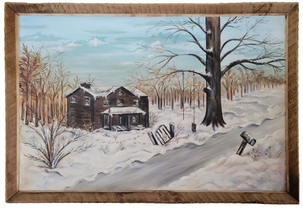 This painting is from the 1960s. It hung for a while in a gallery in Pennsylvania, and is a typical scene of an abandoned rural home in a rural area like Pulaski County.