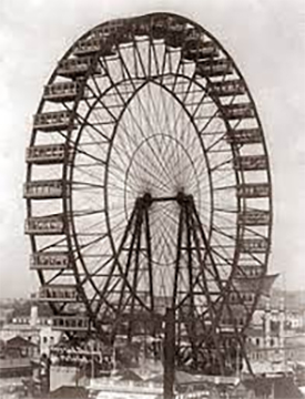 Today, hundreds of Ferris wheels tower over cities and fairgrounds around the world. But today’s wheels are very different from the original wheel, which originated in Chicago during the World’s Fair of 1893. The Ferris wheel owes its famous design to George Washington Gale Ferris Jr., a structural engineer who was born in Galesburg, Illinois and later relocated to Pittsburgh, Pennsylvania, who inspected steel for the fair. Ferris brought the idea for an enormous metal wheel to Daniel Burnham, the fair’s lead architect, after Burnham requested an iconic structure. Burnham and his peers hoped that it could rival the Eiffel Tower, which had been built for the 1889 Exposition Universelle in Paris.