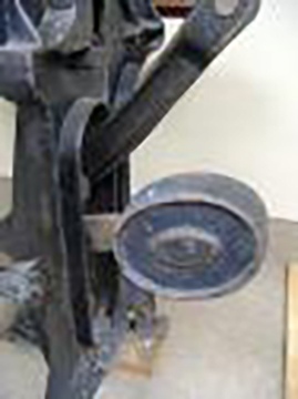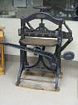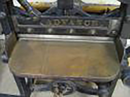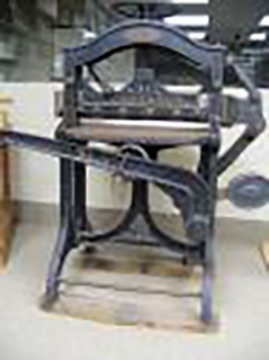 The Historical Society Museum has on display an 1889 Challenge Advance Guillotine Paper Cutter, used by the school for decades for bookbinding and programs. The paper cutter, which was still useable, had been gathering dust for many years. Bound books, becoming a thing of the past, no longer was an area of study for high school students.
