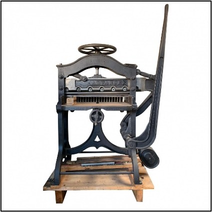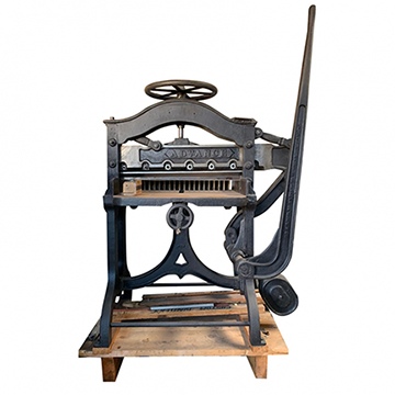 This paper cutter was ahead of its time, and it was manufactured by a company that is still a prominent player in the bookbinding industry today.