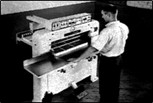 | 1994: The DocuTrim was developed – a single-knife, programmable, 3-sided book trimmer. | ![]() |