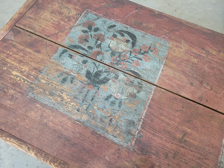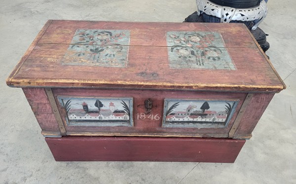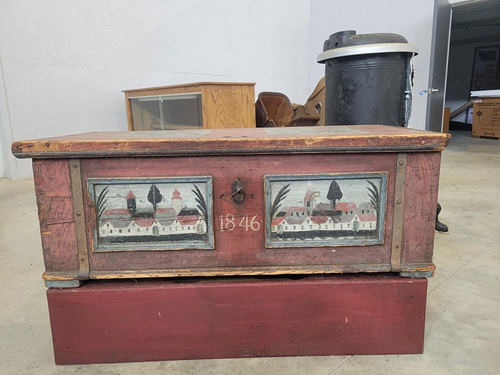 Following Henry’s death, their daughter Clara left the farm and moved to town. She held a farm auction in which the beautiful, handmade, hand-painted chest was sold. The chest then found its way to the Pulaski County Historical Society’s museum.