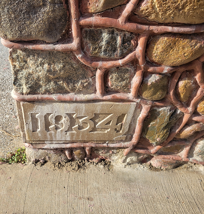 Very little has changed on the gateway since its erection in 1934. It has been repaired, the ground around it landscaped, the electricity updated. It is certainly “shinier,” because in 2000 it was tuckpointed and sealed. Nothing else has changed. Oh … one thing changed, but it is something that was supposed to have been done in 1934. You’ll hear about that later in this piece.