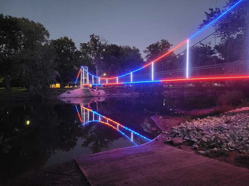 Memorial has been an important part of the recreation and culture of Winamac and Pulaski County since 1923. Owned by the Town, it is nevertheless a County icon, used by countless children, adults and families to traverse the river by foot from one park to the other, or to stand in the middle and watch the river, or to gather for senior class pictures. For walkers, the bridge is part of the mapped walking trail in the town park system. For veterans, the bridge holds a particular significance, because it stands as a permanent testament to their service and sacrifice.