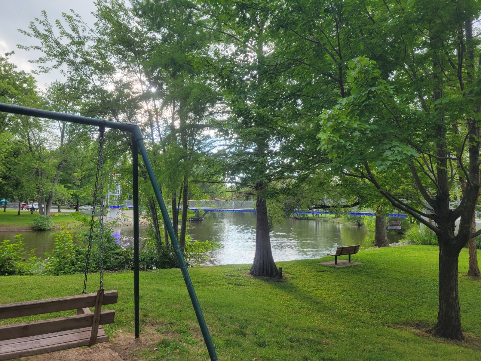 The Park Association raised enough money to improve the river park on the peninsula. They purchased and installed new playground equipment, bath houses, a band stand, a dance pavilion and other amenities. A dedication ceremony was held on July 23, 1922, to celebrate the newly outfitted park.