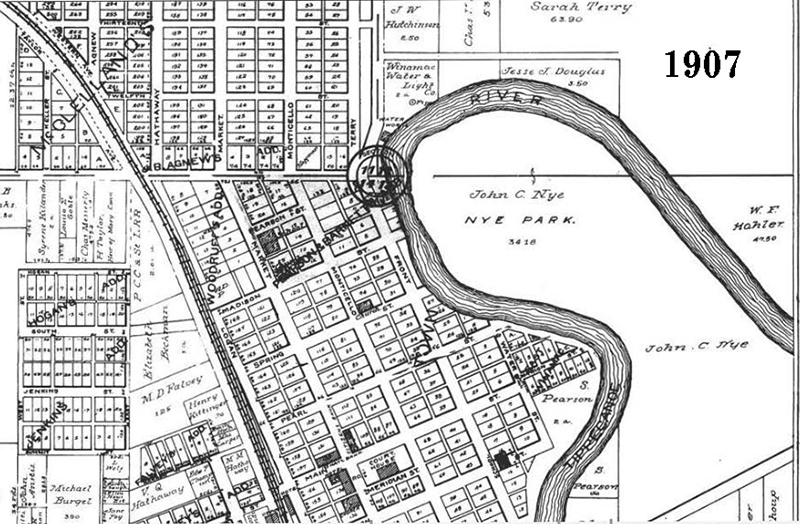 The 1907 plat map shows the peninsula as “Nye Park.”