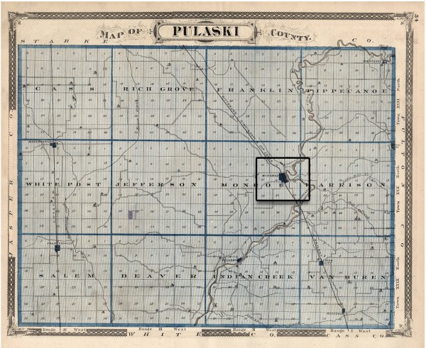The longest piece of that one noted highway still remaining substantially where it formerly was is that extending from Lowey’s grove, north of Pulaski to a short distance this side of the old T. J. Galbreath home four miles or so down the river. With possibly a few slight changes the present road between those points is the same as the old one, established almost ninety years ago. That it should follow the township line between Monroe and Indian Creek, or any survey line as far as it does was an exception to the rule But instead of running due north this side of the